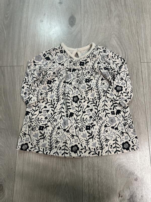 Коттоновая сукенка от бренда George, красивый молочный цвет с черными и серыми цветами, натуральная ткань, размер 3-6месяцев(62-68см), новая (без бирки)