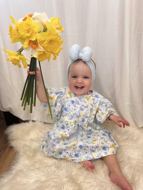 Ніжна сукня та повʼязка для вашої дівчинки 👧🏼 сукня має обʼємні рукава та милий бантик для голови 🩵