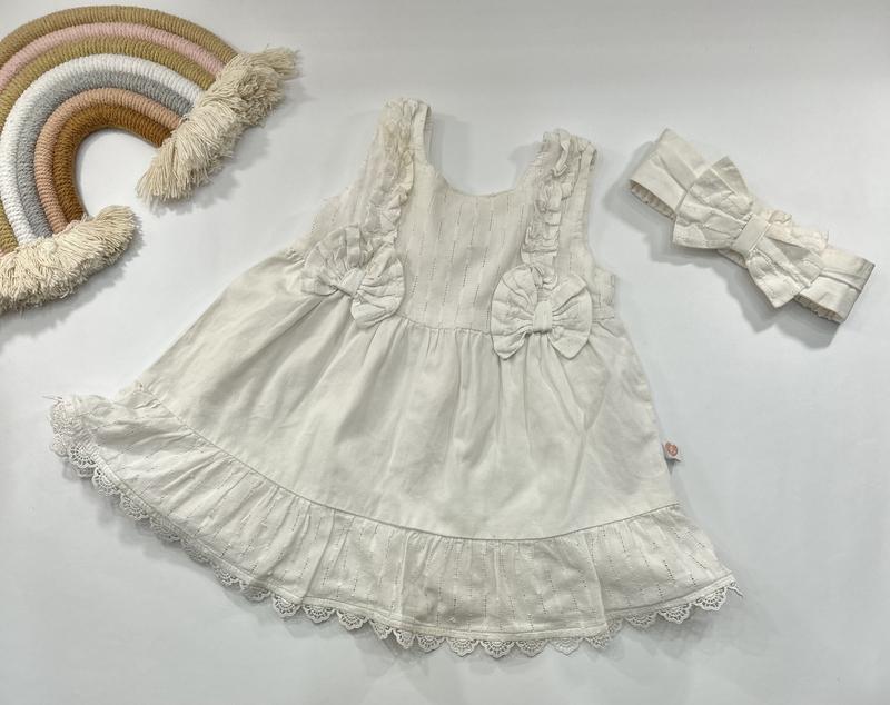 Біла бавовняна сукня + пов’язка для дівчинки 6-9 місяці. Стан ідеальний . Також окремо можна придбати трусики під сукню на памперс , ціна +35 грн Дивітся мої інші оголошення , є багато дитячого одягу та взуття . Вдалих покупок 🤍