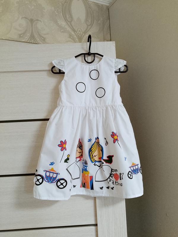 Платье сарафан / с ярким принтом / летнее для девочки. 95% Polyester. 5% Spandex. Размер не указан. Может быть 9-12 месяцев. Линия груди 27-28 см. Линия талии 26-27 см. Длина от плеча 56-57 см. Длина от плеча до пояса 22 см. Ширина внизу 52 см. Плечі 21 см+ рюши 5 см. Сзади застежка -гудники. Ткань легкая, троха просвечивает, без подкладки. Рисунок при прикосновении шуршит. На поясе есть шлевки под поясок, сам поясок отсутствует.