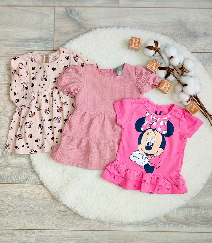 Легкие летние платья для девочки 3-6 мес, 68 см в идеальном состоянии, платье пудра новое, никаких недостатков.