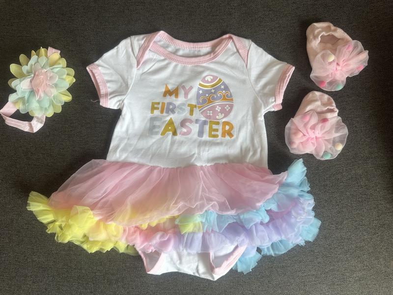 Боді-сукня, одягали лише раз для фото, на фото моя доня в цій сукні, виробник зазначає розмір 66см, матеріал приємний на дотик, мʼякенький
