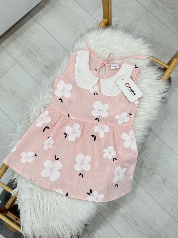 Дуже гарне котонове платтячко, легенька тканина, розмір пише 9/12 та буде довше на 86+- по замірам довжина 45, від плеча до талії 22, ширина по грудях 28, висота по проймі 10,5