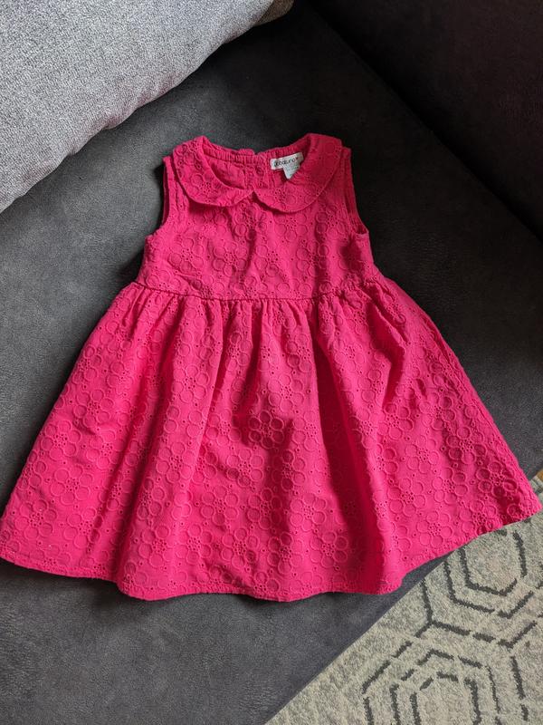 Яркое розовое платье из 100% хлопка, сзади застегивается на пуговицы. Стан - идеальный, замеры на фото.