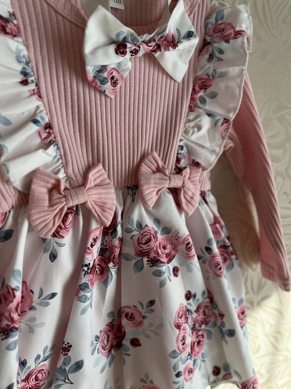 Сукня-боді для дівчинки у розмірі 80см(9-12м) Чудовий пошив, зручна, легенька, приємний до тіла рубчик. Красиво виглядає, стан ідеальний, як новий!