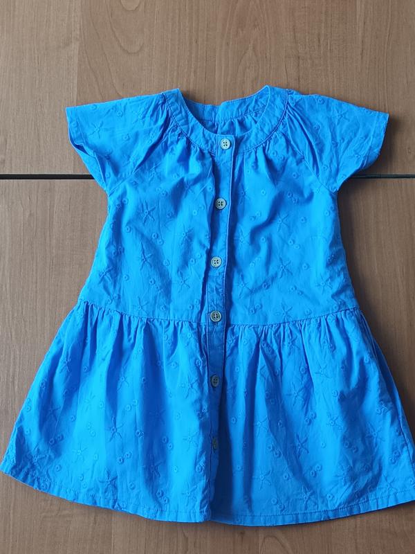 Платье в идеальном состоянии, 100% хлопок, на хлопковой подкладке. Удобная фронтальная застежка на пуговицы. По этикетке на 9-12 месяцев. Длина-46см, ширина под рукавами-26см.