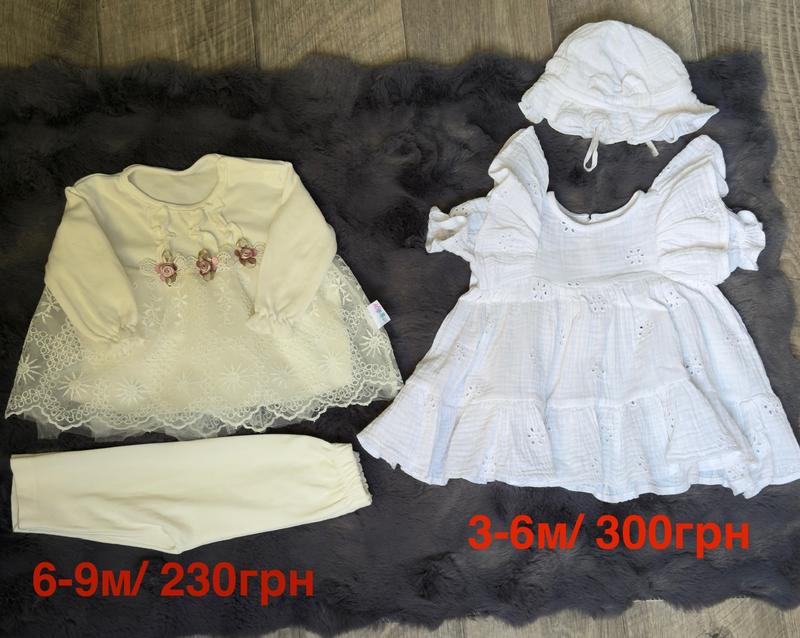 Сукня з шапочкою з мусліну, чудово підходить на хрещення на літо. Друга сукня так само чудово виглядає, дуже святково виглядає.
