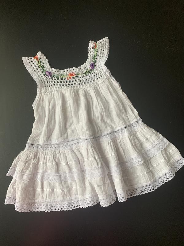 Дуже красиве,легеньке коттонове плаття. Для дівчинки 12-18 місяців,довжина 45см,плаття ніжне біленьке,фото чомусь його робить молочним.
