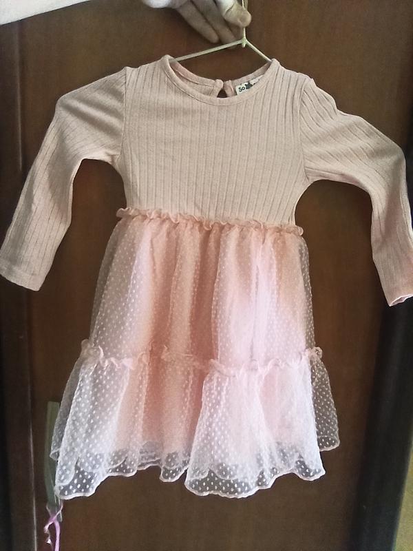 Красивое пудровое платье с фатином в горох с длинным рукавом 86см 12-18 м