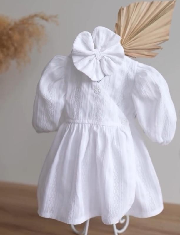 Очень красивое нарядное платье для младенца из ажурного батиста. В комплекте нарядная повязка на голову. Надевали один раз на крестообразие.