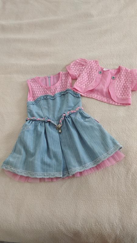Праздничное джинсовое платье и болеро на девочку 3-4 рюмки