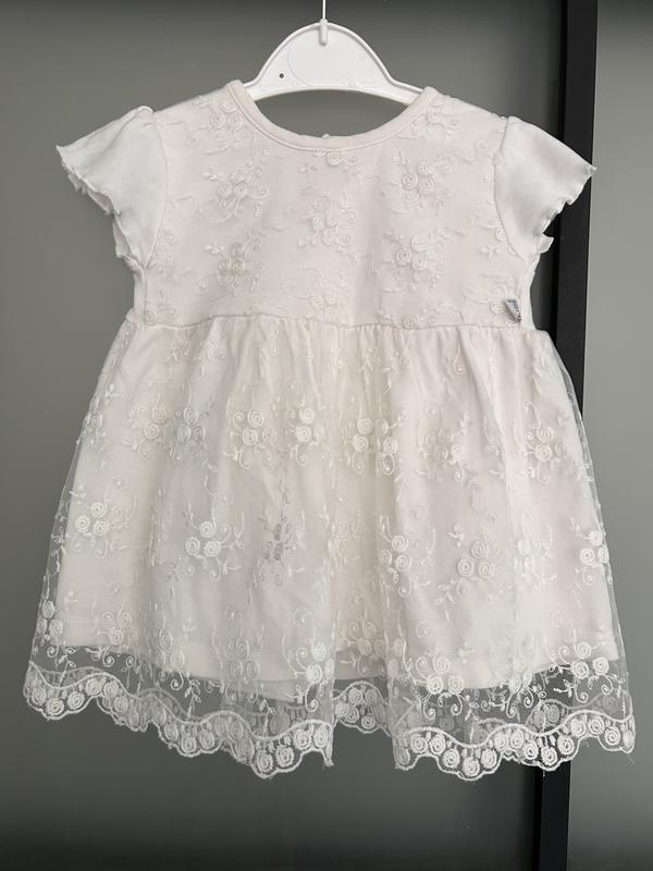 Красива сукня для дівчинки, розмір вказаний 86 (12-18 міс), але маломірка, нам підійшла на ріст 69, вага 8,9 кг (останнє фото). Заміри: довжина - 38, півобхват талія - 25