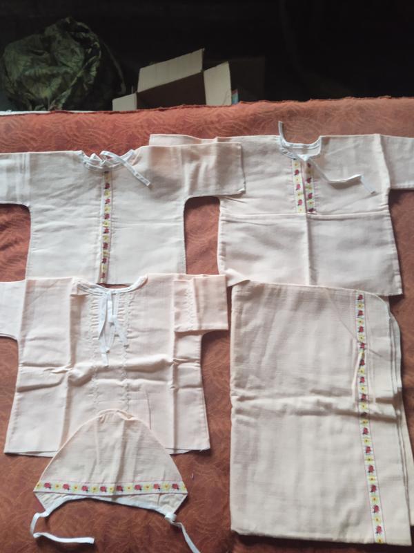 Фото 1,2,3 Новый байковый набор, советский, персиковый. 3 распашонки, шапка, пеленка. На сгибах пеленки есть кашлатости и пятна от долгого лежания. -- 39 грн Фото 4 Б/у советские. Распашонка,байка,шапки, косынки. -- 25 грн Фото 5 Новые гольфы синие,16 размер. -- 24 грн Фото 6,7,8. Б/у сарафан, и по типу фартука,года на 3. -- 19 грн за два При заказе товара меньше 49 грн. по договору.
