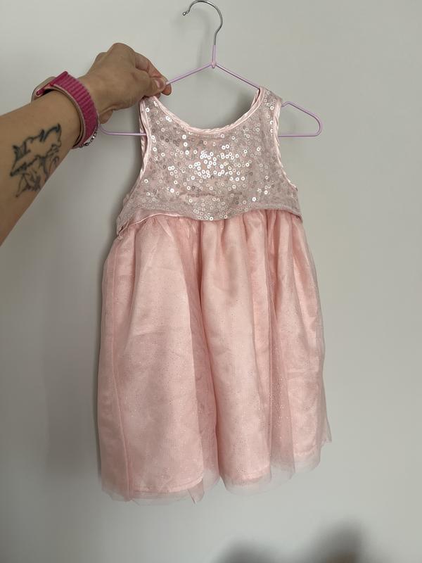 Святкова сукня для дівчинки, застібки заду на ґудзиках, дефект який ми намагалися прати — маленький штрих фломастером (на фото). Пастки Під сіточкою- не дряпаються)