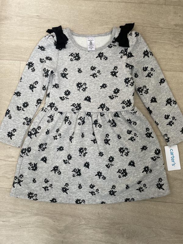 Плаття Carter’s для дівчинки 3T (на 2–3 роки) М’яке сіре платтячко з довгим рукавом, прикрашене чорним квітковим принтом. На плечиках – милі бантики.Тканина приємна до тіла, комфортна . 🔹 Розмір: 3T (на зріст приблизно 92–98 см) 🔹 Бренд: Carter’s 🔹 Колір: сірий з чорними квітами 🔹 Матеріал: бавовна з еластаном (м’який трикотаж) 🔹 Стан: нове, з біркою 💰 Ціна: 380 грн