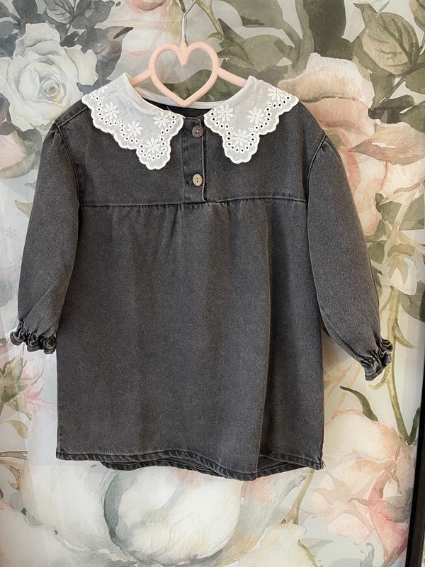 Джинсове плаття з мереживом для дівчинки від Zara.Розмір 110.Плаття нове, має бірку .Нюансів немає.