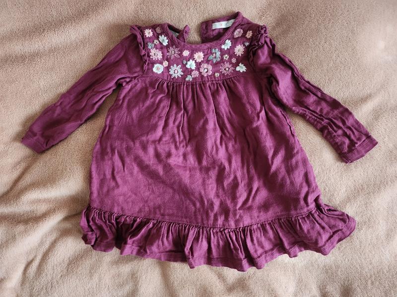 Платье бордового цвета с вышивкой для девочки в размере 80-86 с подкладкой. Бренду F&F. В идеальном состоянии.