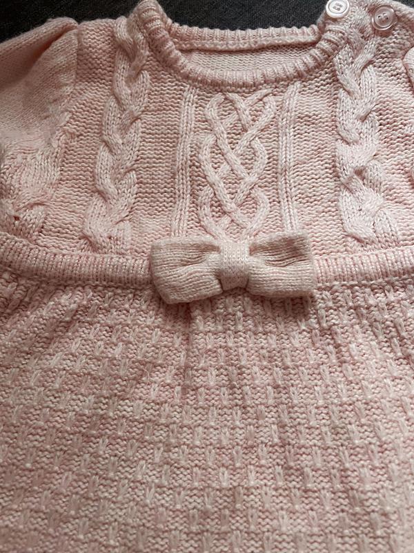 Вʼязане плаття ніжно рожевого кольору, на 3-6м, буде й довше Довжина 39см Ширина 23см Рукав 23см