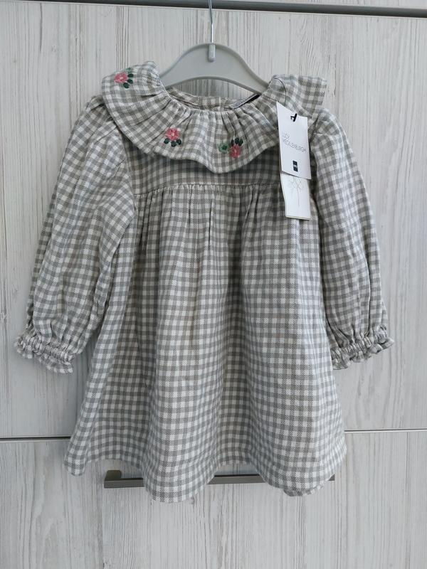Брендовое теплое фланелевое платье с вышивкой на воротнике