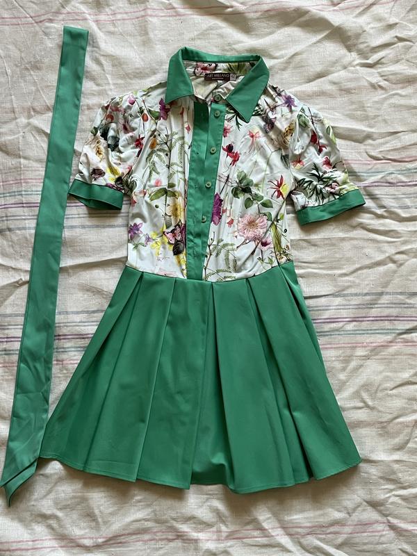 Гарна літня сукня для дівчинки. Яскрава, мила і приємна на дотик до тіла. По довжині вище колін. Розмір на фото це десь (S-M). Наявний поясок. Верх - атлас.