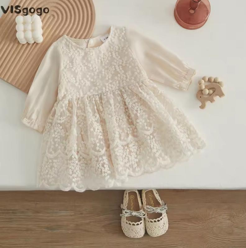 очень красивое молочного цвета, идеально подойдёт для крестин или любых других торжеств, качество отличное. ещё есть под него очень красивые носочки с ажурными бантика и и повязка