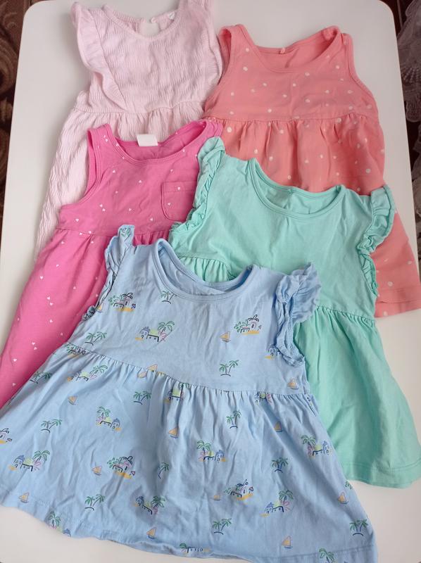 платье для девочки разных брендов зеленое и голубое - это туники 92 размер, но мы носили как платье в год