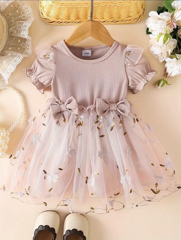 Сукня дитяча 3-9 місяців Сукня для дівчинки: повсякденна сукня та спідниця з тюлю з бантом, однотонний костюм для немовлят, у красивому та милому літньому стилі