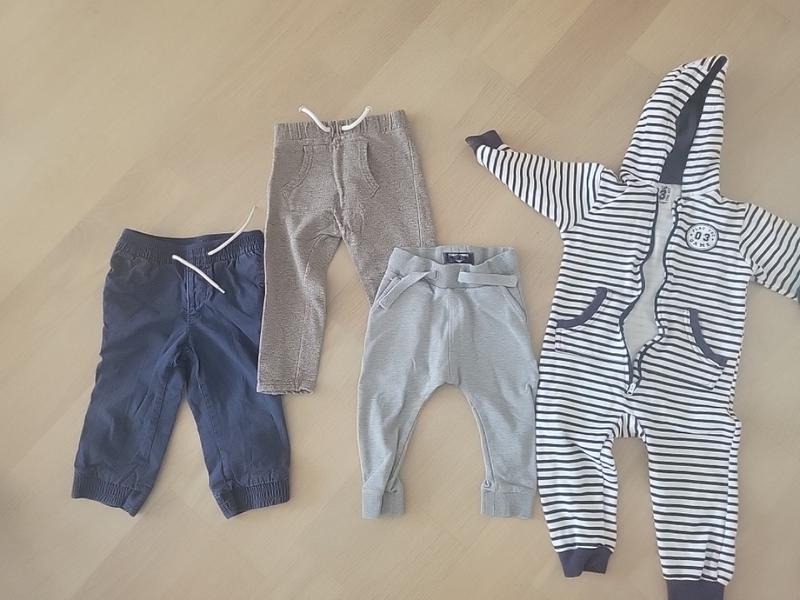 набір штанів 3шт. +чоловічок, Сині Gap (всередині додатк. котонова підкладка) ДШ-43см; крок- 25см, ШПояса-22см; Коричневі (легенька байка всередині) ДШ-44см; крок- 28см, ШПояса-22см; Сірі котонові: ДШ-42см; крок- 24см, ШПояса-21,5см; Комбез: ДР -25см, ДВ-65см; крок- 26см.