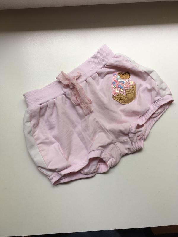 Нежные шортики на малышку. Состояние отличное, незначительные следы носки. Замеры: Пояс 21-25 Высота по боку 19 Высота спереди 21см Ширина по попе 33см Ширина манжета на ножке 16см