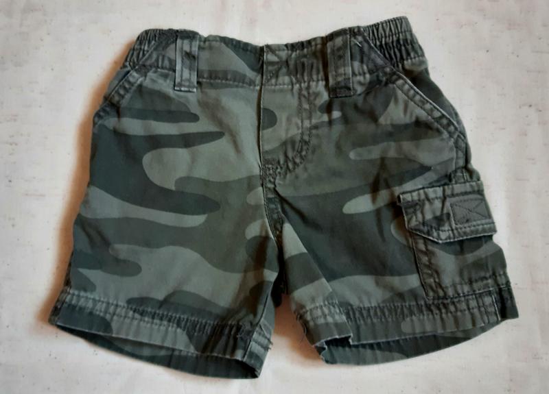 Очаровательные шорты с 3 карманами один из которых карго камуфляж трех оттенков хаки амнриканского бренда "Сirco" на малыша 6 месяцев, ростом 74-80см. Талия на резинке. ЗАМЕРЫ длина по боковому шву 22см, шаг 7см, ПОТ 20см, ПОБ 28см, посадка перед/зад 17/20см