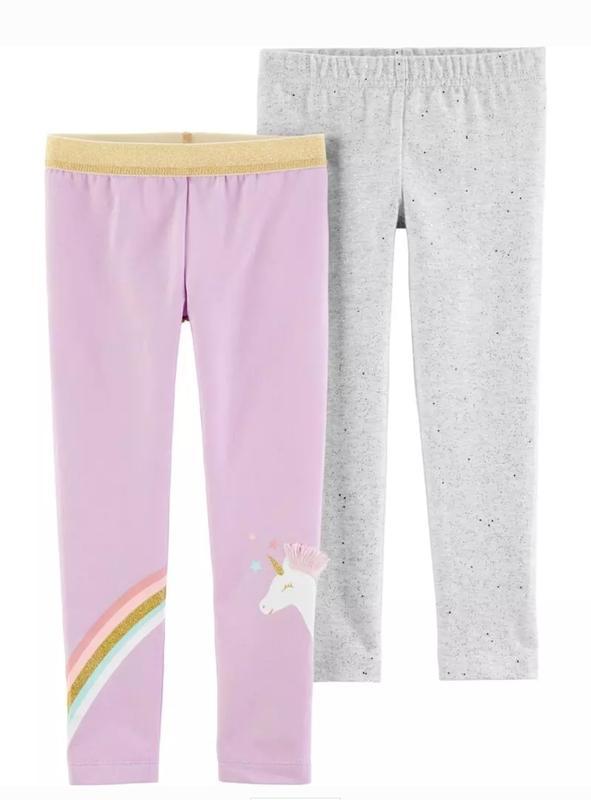 Комплект из 2 леггинсов Carter's Sparkly Unicorn с эффектом блеска трикотаж для девочек на 9 мес. Скрытый эластичный пояс для удобной посадки Открытый пояс с блестками Много растяжки Повсюду сверкает Трафаретная печать на ногах радуги и единорога с бахромой Материал: 93% хлопок, 7% эластан, трикотаж. Цена за 1 шт. В наличии в сером цвете.