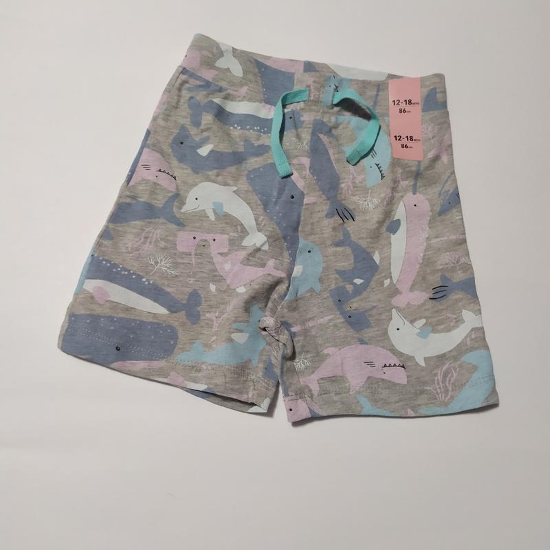 Шорти трикотажні сірі в дельфіни primark р.80, 86, 92см