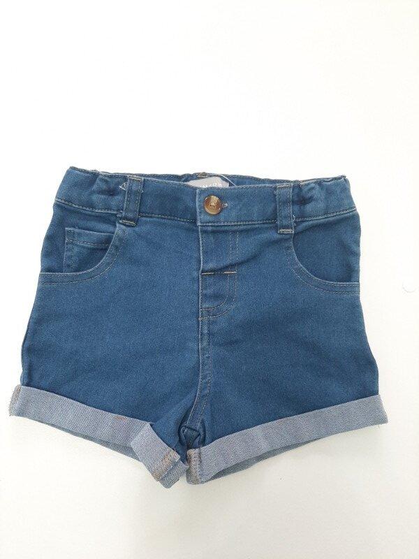 Шорты джинсовые синего цвета , есть карманы, утяжка. Сделано в Китае. Состав: 68 коттон, 30 полиэстер, 2 эластан. Замеры: длина 24, пояс 24 см. Нет бумажной бирки