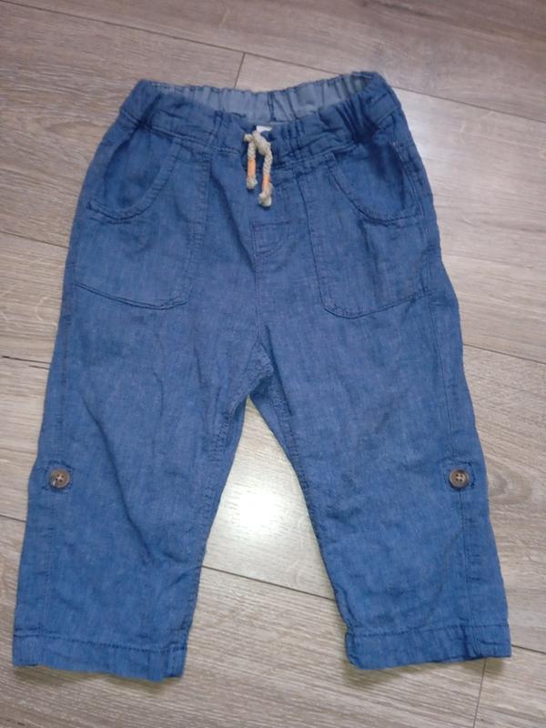 Штанішки шорти дитячі льон+котон H&M розмір 80 на 9/12 місяців у дуже хорошому стані, довжина 40см, поб 32см, пот 22см резинка і шнурки, посадка 20см, крок 23см.
