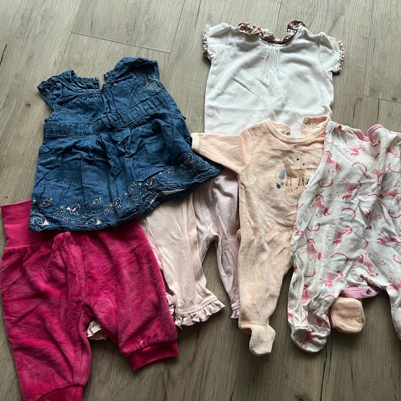 В набір входить -сукня -2 комбінезончика -пісочник -3 штанів Розмір 56 Дефектів немає