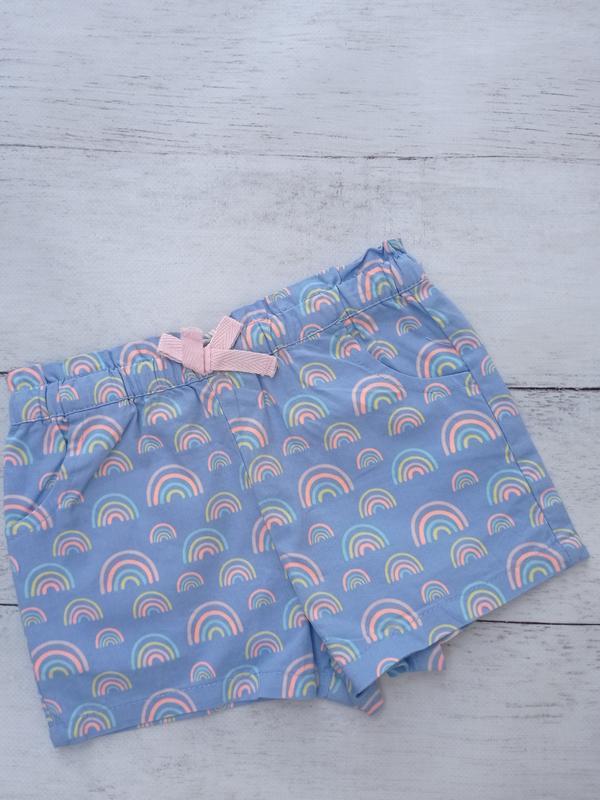 Тип одягу: Повзунки Шорти для дівчинки Primark ніжно-блакитного кольору з цікавим принтом. Тканина легка, натуральна, не парити 100% бавовна. Розмір вказаний 9-12 місяців (80 см). ПРОДАНОЗаміри: Довжина від пояса по боковому шву - 19 см Довжина переднього шва (від пояса до підгузка, перехрестя швів) - 17 см Задній шов (від пояса до перехрестя швів, по попі) - 21 см Ширина в поясі - 21.5 см Ширина в нозі (в самому низу) - 19 див. Допустима похибка в замірах 0,5-1,0 див. Стік.Нові.Паперова бірка відсутня (враховано в ціні), внутрішні бірки зрізана у меншому розмірі. Згідно замірів розмір на 3-6 місяців Заміри: Довжина від пояса по боковому шву - 17.5 см Довжина переднього шва (від пояса до підгузка, перехрестя швів) - 15.5 см Задній шов (від пояса до перехрестя швів, по попі) - 21 см Ширина в поясі - 20 см Ширина в нозі (в самому низу) - 17.5 див.