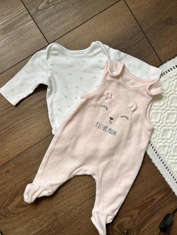 Набір комплект для новонародженої дівчинки 50см в пологовий велюрові рожеві повзунки боді