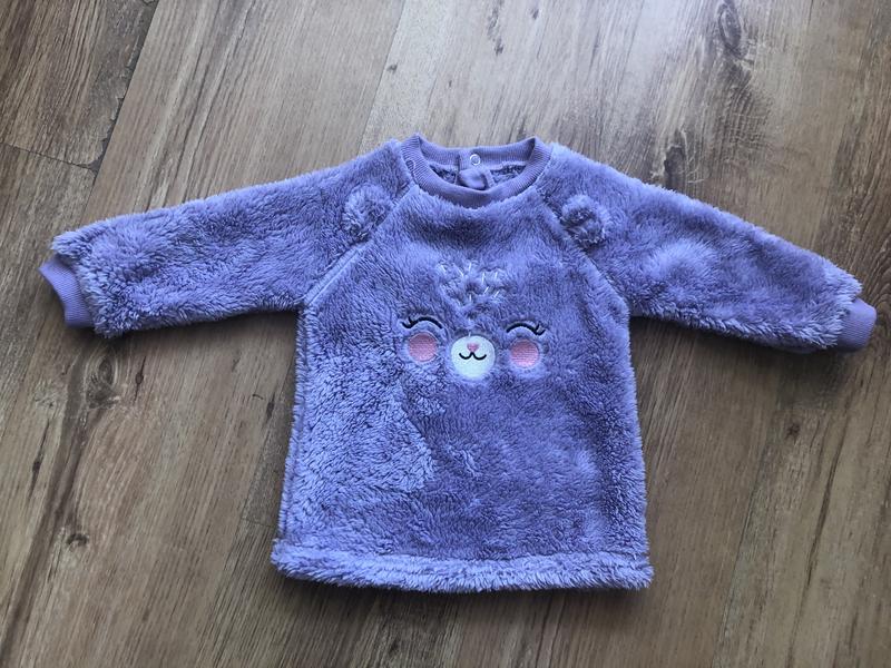 Очень мягусенький свитерок с милой мордашкой . Сзади есть кнопочки , по бирке 6-9. Новый , не одевался , единственное оторвалась бирка