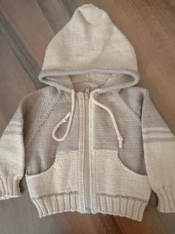 Дитяча кофточка ручної роботи, зв'язана з любов'ю, з теплих і м'яких дитячих ниток. На вік до 7-8 міс. Одягнена практично 2 рази, а дальше стала замала. Шовчики тільки на рукавах. Стильненька і практична, в такій кофтині ваша дитина буде неповторною.