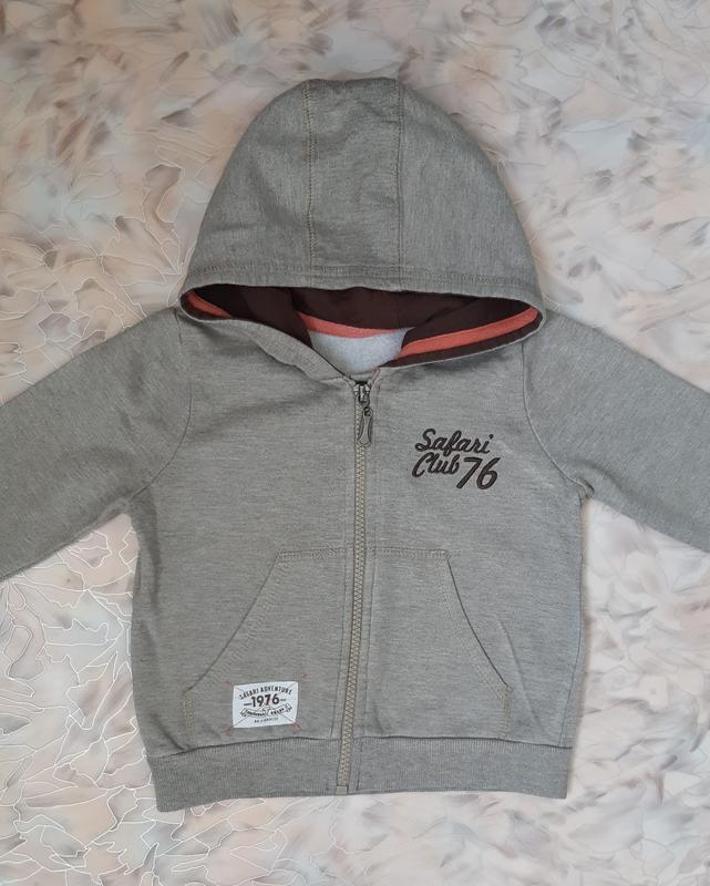 Кофта на блискавці для хлопчика. Якість тканини і пошиття відмінне. Стан речі ідеальне. По бірці розмір: 12-18 місяців. Орієнтуйтеся на реальні заміри зазначені на фото.