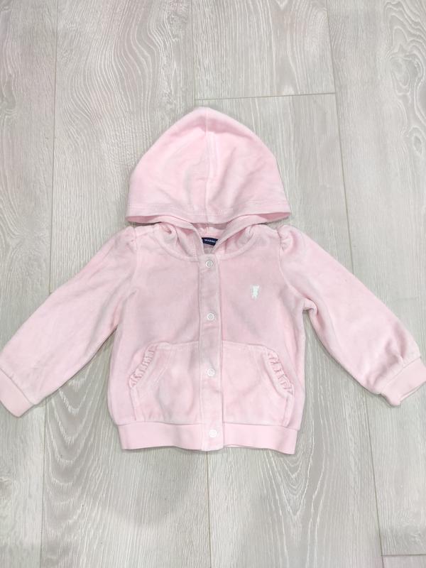 Велюрова кофтинка на блискавці. Дуже ніжна та мила. Без утеплення. Стан ідеальний. Заміри: ПОГ - 26 см ДОВЖИНА - 28 см РУКАВ ВІД ПЛЕЧА - 25.5 см ПЛЕЧЕ - 3 см