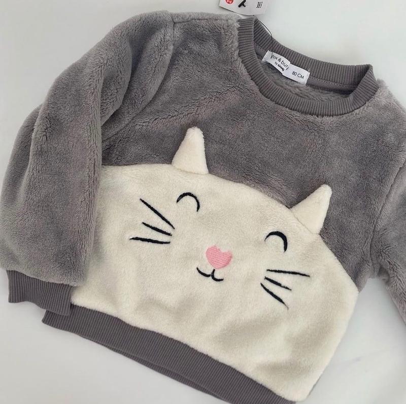 Тепленький світшот с прінтом котика. Дуже теплий и приємний на дотик. Є в 3 розмірах 68 см, 74 см, 80 см
