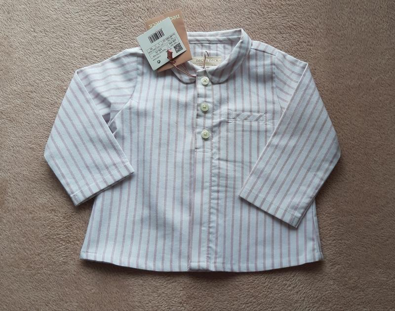 Сорочка neck&neck для хлопчика 6-9 міс. 100% cotton Біла в рожеві смужки На гудзиках (розстібається повністю) Рукав від плеча - 24 см Спереді довжина - 25 см Довжина по спинці - 29 см