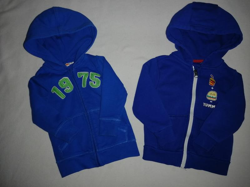 Кофты-12-24 мес,в хорошем состоянии,пятен,дыр нет,замок в отличном состоянии.Тёплие.Одна-45грн. Спрашивайте,отвечу на любые вопросы.
