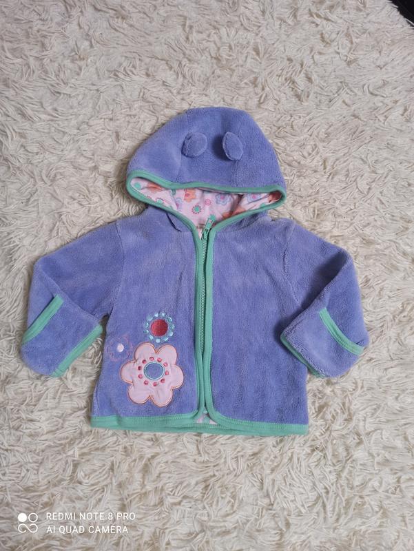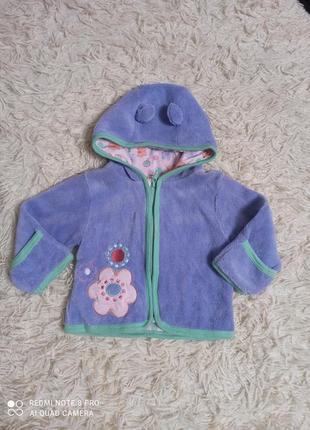 Теплая кофта с ушками и царапками. Утеплена, сверху ткань травка, как флис. Указан размер 62 см.