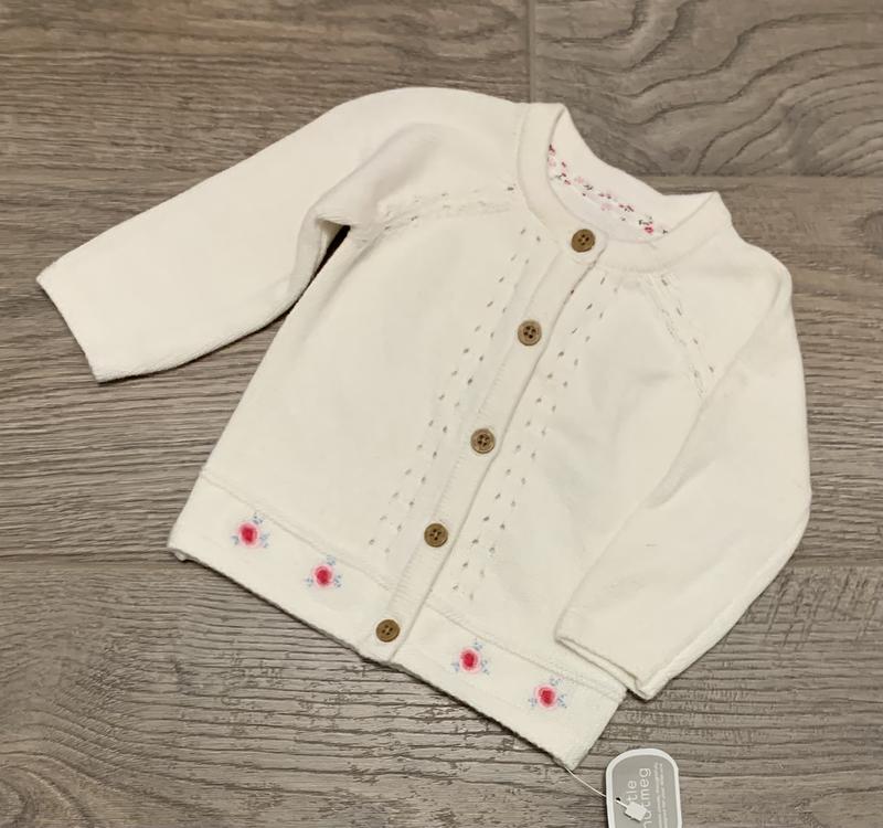 Кофта Little nutmeg на дівчинку 0-3 міс. 100 % котон ПОГ 23,5 см + тягнеться , рукав від ворота 28 см, довжина по спинці 28 см