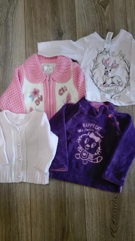 Кофты на девочку 62-74р. Очень классные, 2 куплены в Германии, состояние отличное. Цена 155 грн. за 4 кофты. По отдельности цену уточняйте.