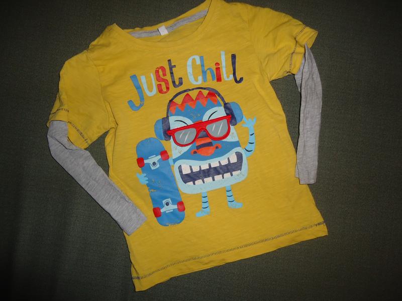 Указано на 1,5-2года, 90см Длина - 36см Ширина - 28см Рукав - 25см, от плеча - 31см Есть трещинки на рисунке. Не знаю, так должно быть или нет. Очки у героя поднимаются