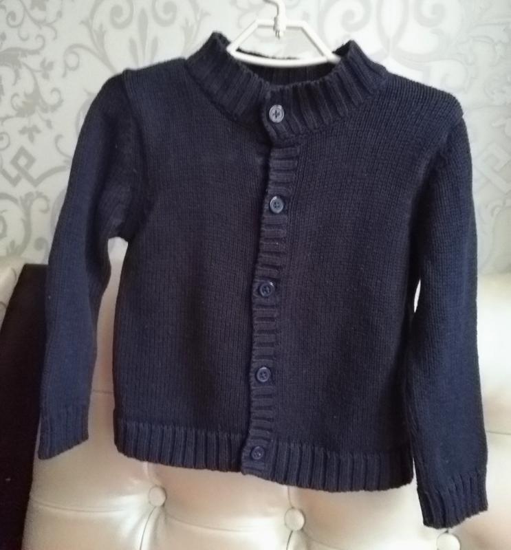 Кофта с длинными рукавами, застегивается на пуговицы. Воротник-стоечка. Размер на бирке: 18 мес, рост 80 см. В идеальном состоянии. Замеры: Пог-29.5 Поб-27 Длина-33 Длина рукава по внутр.шву-23 Длина рукава от линии плеча-31,5. Зластична.