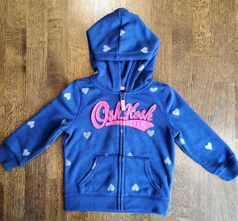 Кофта с капюшоном для малышки, с лёгким "начёсом" внутри, "сердечки" блестящие. Очень красивая, стильная, в идеальном состоянии. Бренд в рекламе не нуждается. Размер по бирке -12-18 мес., не маломерит, мы носили до 2 лет. Дополнительные фото, замеры - по запросу.